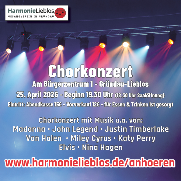 Kartenvorkauf direkt über die Harmonie: Einfach e-mail an info@harmonielieblos.de mit der Anzahl der gewünschten Karten. Karten können abgeholt oder zugesendet oder einfach an der Abendkasse hinterlegt werden.
